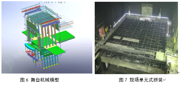 项目观演厅均设计有舞台机械系统,在深化设计阶段建立SolidWorks模型,进行运动干涉检查。通过模型实现设备和构件的单元式分段、工厂化预制、现场单元式组装,保证设备与构件的安装质量。